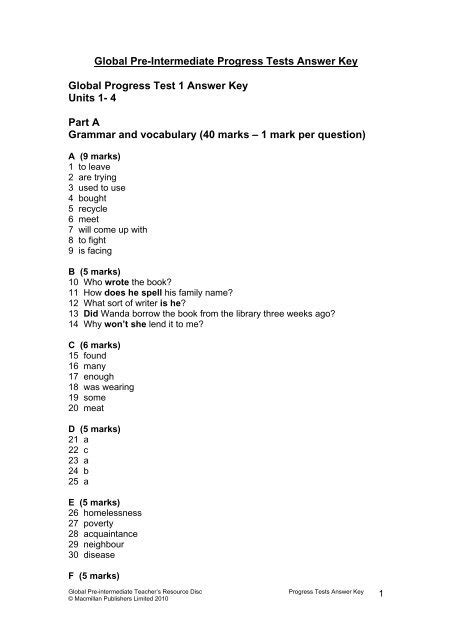 Read GLOBAL ANSWERS KEY PROGRESS TESTS B INTERMEDIATE Audio CD Gutenberg
